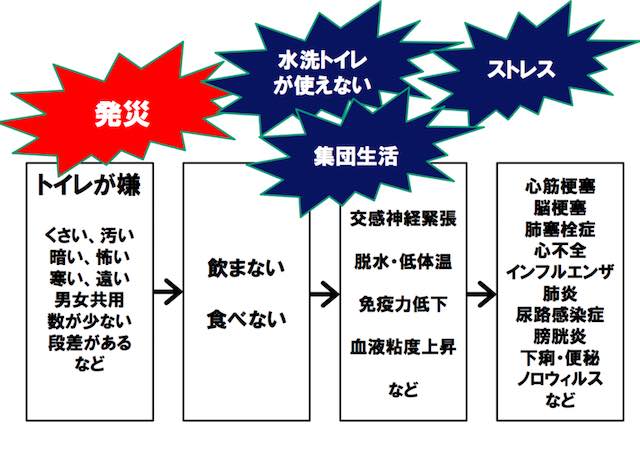 トイレと災害関連死の関係(資料提供:NPO法人日本トイレ研究所)