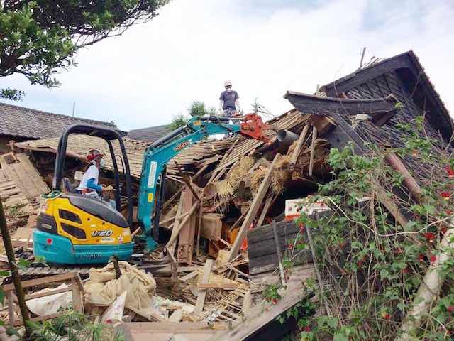熊本地震の際、倒壊した納屋から農機具を取り出す作業を行う日本財団の災害支援チーム(提供:日本財団)