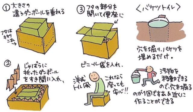 トイレの作り方(出典:NPO法人レスキューストックヤード「避難所運営の知恵袋」)